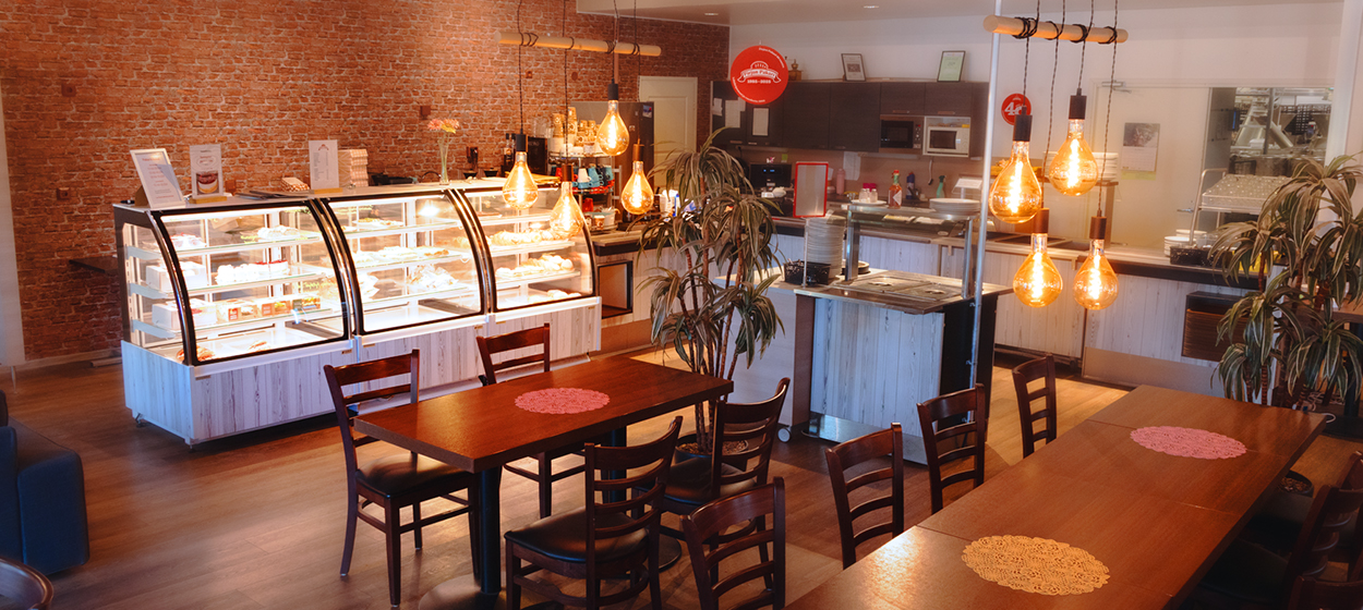 Myymälämme yhteydessä on kahvila, jossa voit pysähtyä kahville tai valita vitriinistä jotakin suolaista tai makeaa. Tilat sopivat mainiosti rauhalliseen kahvitaukoon.