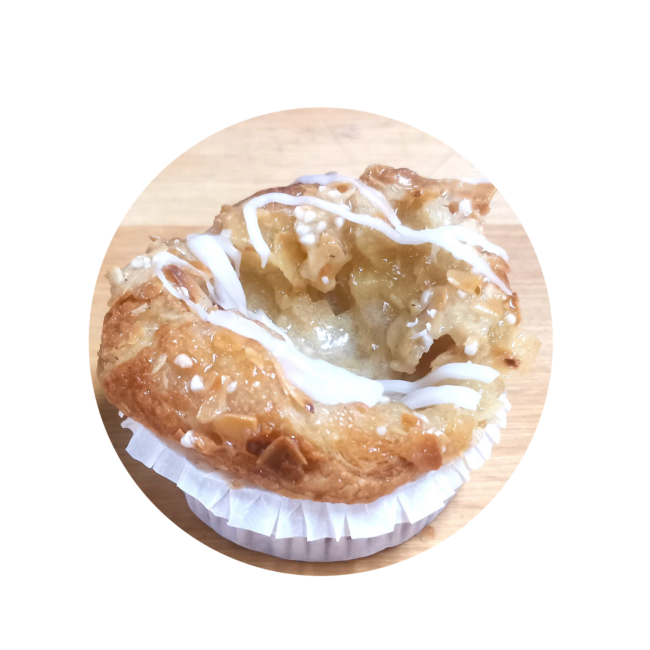 Kahvilan vitriinistä löydät päivittäin tuoreita suolaisia ja makeita leivonnaisia. Olethan maistanut jo luumumunkkeja ja lihapiirakoita?
