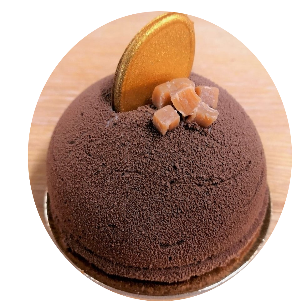 Dekoration: caramellfyllning [socker, stärkelsesirap (vete– eller majsstärkelse), vatten, laktosfritt smör, laktosfritt mjölkpulver, förtjockningsmedel (E440, E509, E452), salt, färg (caramellsirap), arom, konserveringsmedel (E202)], socker, glukossirap, kondenserad mjölk, sötad palmolja, smör, emulgeringsmedel (E474 palm, E471), arom, salt, mörk choklad [kakaomassa, socker, kakaosmör, sojalecitin, naturlig vaniljsmak], choklad [socker, härdat vegetabiliskt fett (palmkärna), kakaopulver, sojalecitin, vanillin], färger [alluranröd AC (E129), para-orange (E110), tartrazin (E102) och briljantblått FCF (E133)], drivmedel (E943a, E944, E943b), solrosolja, färger (E555, E171, E172), drivmedel (E943a)