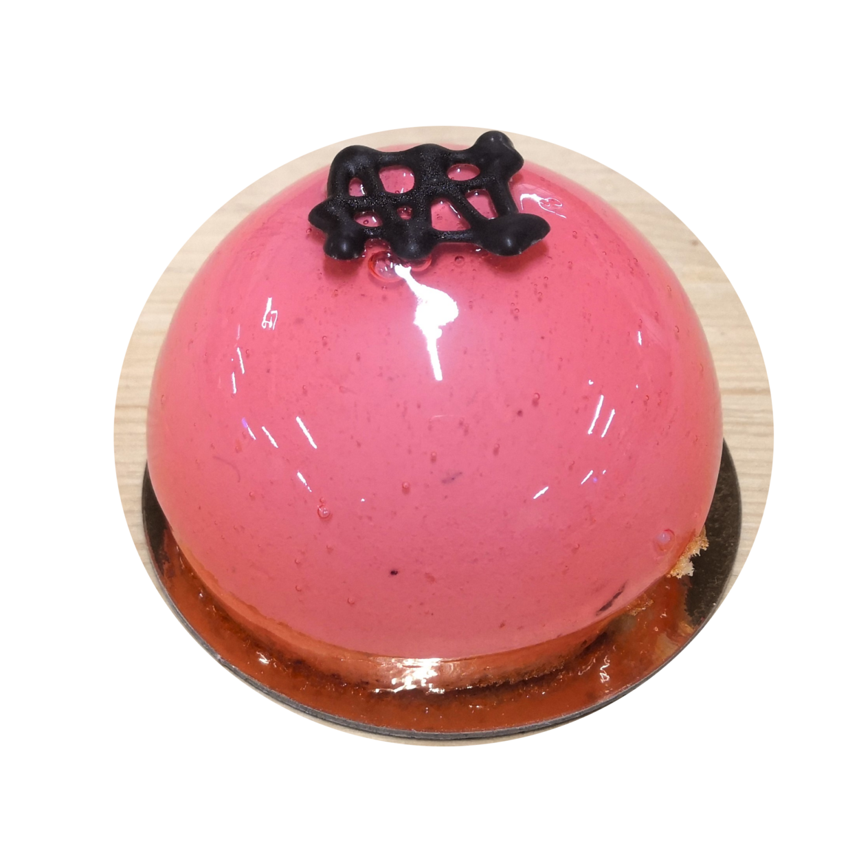 Ytdekoration: Spegelgelé [glukossirap, vatten, socker, förtjockningsmedel (E440ii, E407, E341iii), surhetsreglerande medel (E330), konserveringsmedel (E202)], röd färg [glukossirap, vatten, sackaros, färg (E129), gelningsmedel (E406), surhetsreglerande medel (E330), konserveringsmedel (E202)], mörk dekorationschoklad [socker, kakaomassa, kaakaosmör, emulgeringsmedel (E322) solroslecitin].