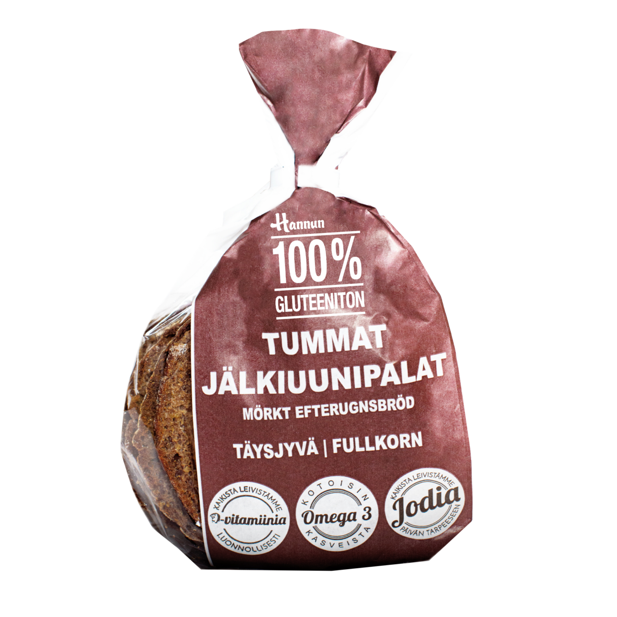 Täysjyvän osuus viljaraaka-aineista 96 %, valmiissa tuotteessa 50 % täysjyväviljaa.