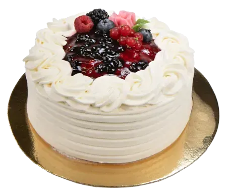 Huomio: Kakku on saatavilla myös ilman marjoja tai kinuskilla (sisältää maitoa) ilman lisämaksua.