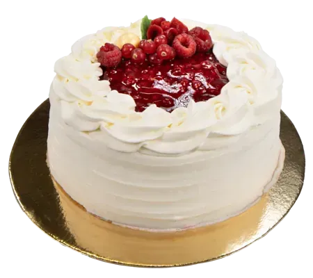 Tuotekuvaus: Gluteeniton kermakakku herkullisella vadelmahillolla ja laktoosittomalla kermavaahdolla.