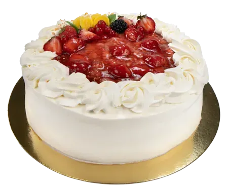 Kakku myydään normaalisti sileällä kermalla. Saatavilla lisämaksusta myös kotimaisilla lähituottajan pakastemarjoilla (+5€/8€) tai kinuskilla (sis. maitoa) (+3€/5€).
