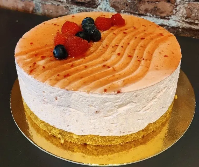 Tämä pehmeä, vadelmainen moussekakku on helppo vaihtoehto juhlapöytään, sillä se on herkullisen makunsa lisäksi myös gluteeniton, maidoton, pähkinätön ja kananmunaton!
